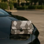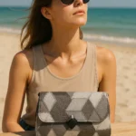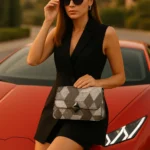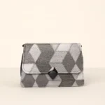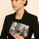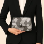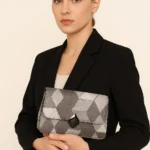 The Graphite Edge is a statement clutch crafted with precision in sharp black and grey geometric tones. With a bold pyramid clasp and textured finish, this piece is made for women who thrive on the spotlight — or create it wherever they go.