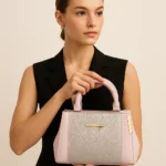 The Pink Mirage blends pastel pink elegance with a silver shimmer that catches the light — and attention — in all the right ways. Adorned with golden details, it’s the perfect statement piece for the woman who walks the line between grace and glamour.